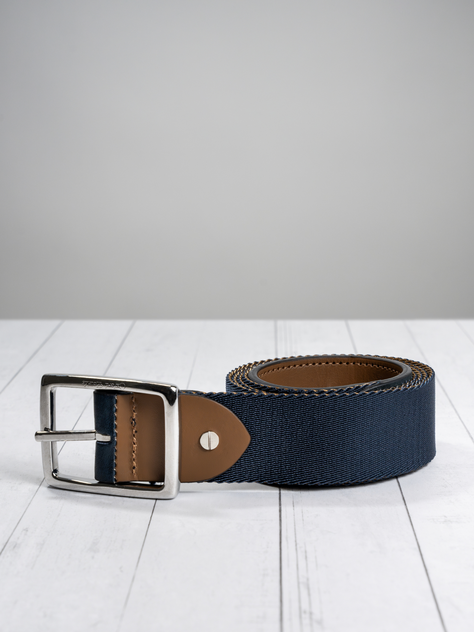 Discover the perfect blend of versatility and sophistication with our sleek reversible belt, expertly crafted from premium Italian Viscose. One side showcases a refined navy blue that reverses to a rich tan, while another option pairs timeless sapphire black with Bordeaux. Designed to complement any gentleman's wardrobe, this belt is finished with a solid brass, logo-engraved buckle for effortless transitioning. An essential accessory that exudes elegance and practicality.