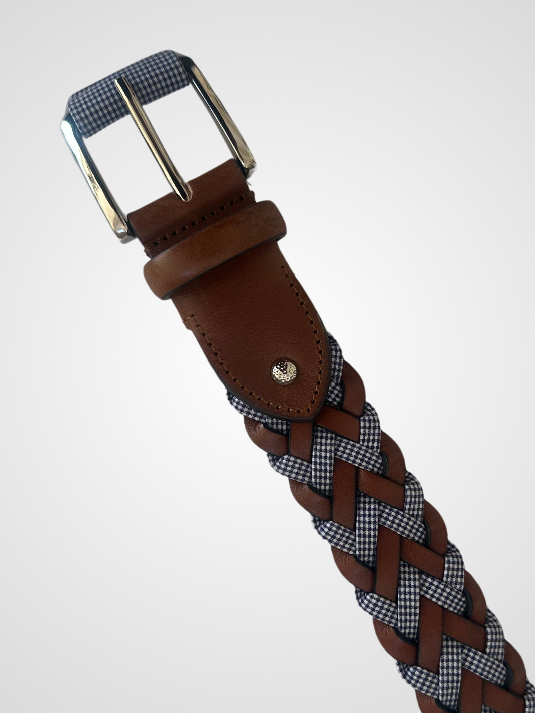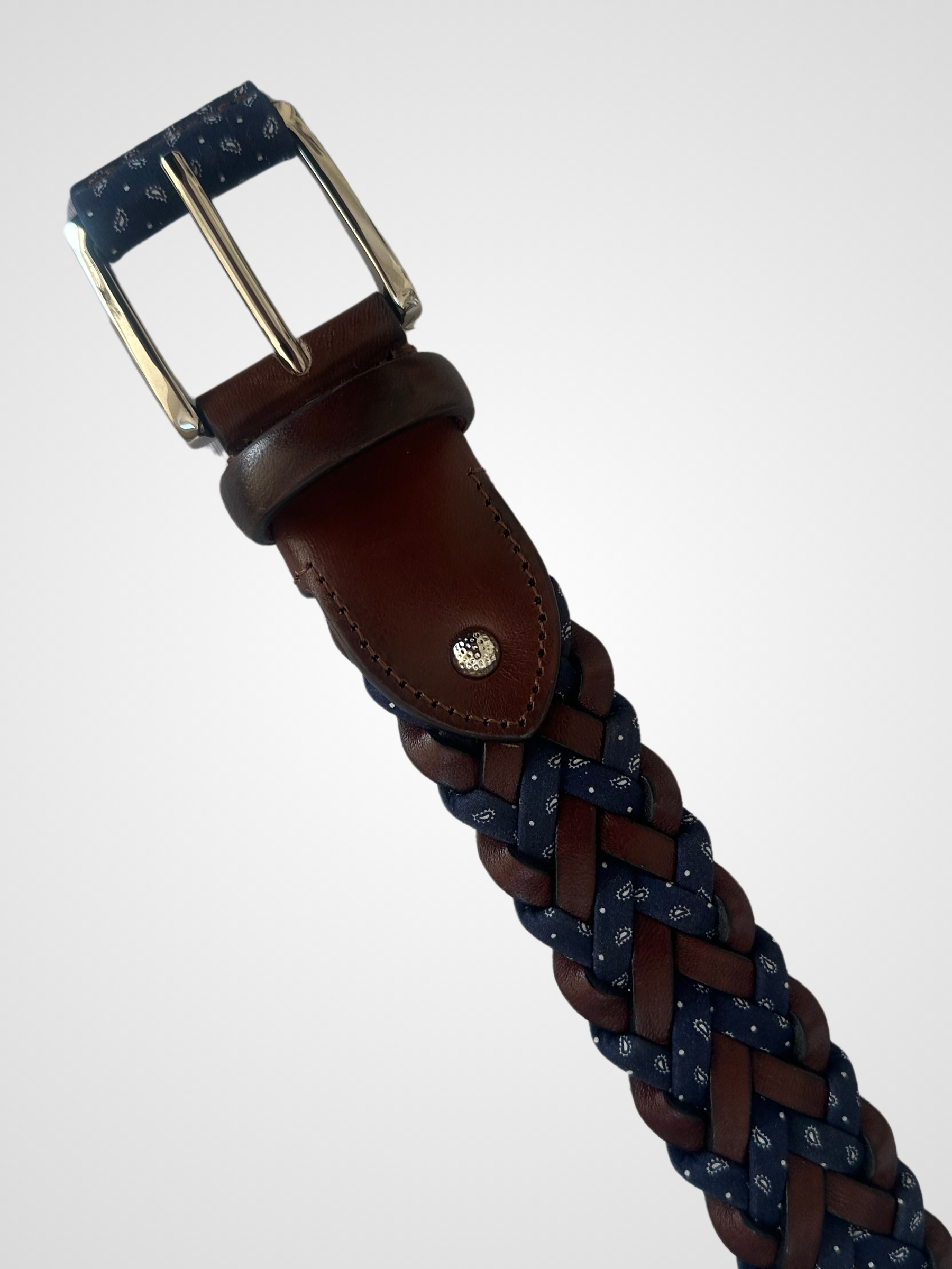 Crafted with the utmost attention to detail, this casual belt combines the finest Italian calfskin with 100% superior cotton fabric. The luxurious calfskin offers durability and a refined look, while the cotton fabric adds a touch of stylized fashion and versatility. Perfect for elevating your everyday style, this belt seamlessly blends sophistication with casual ease, making it an essential accessory for both relaxed and refined occasions. Experience the exceptional quality and craftsmanship that define Italian luxury.