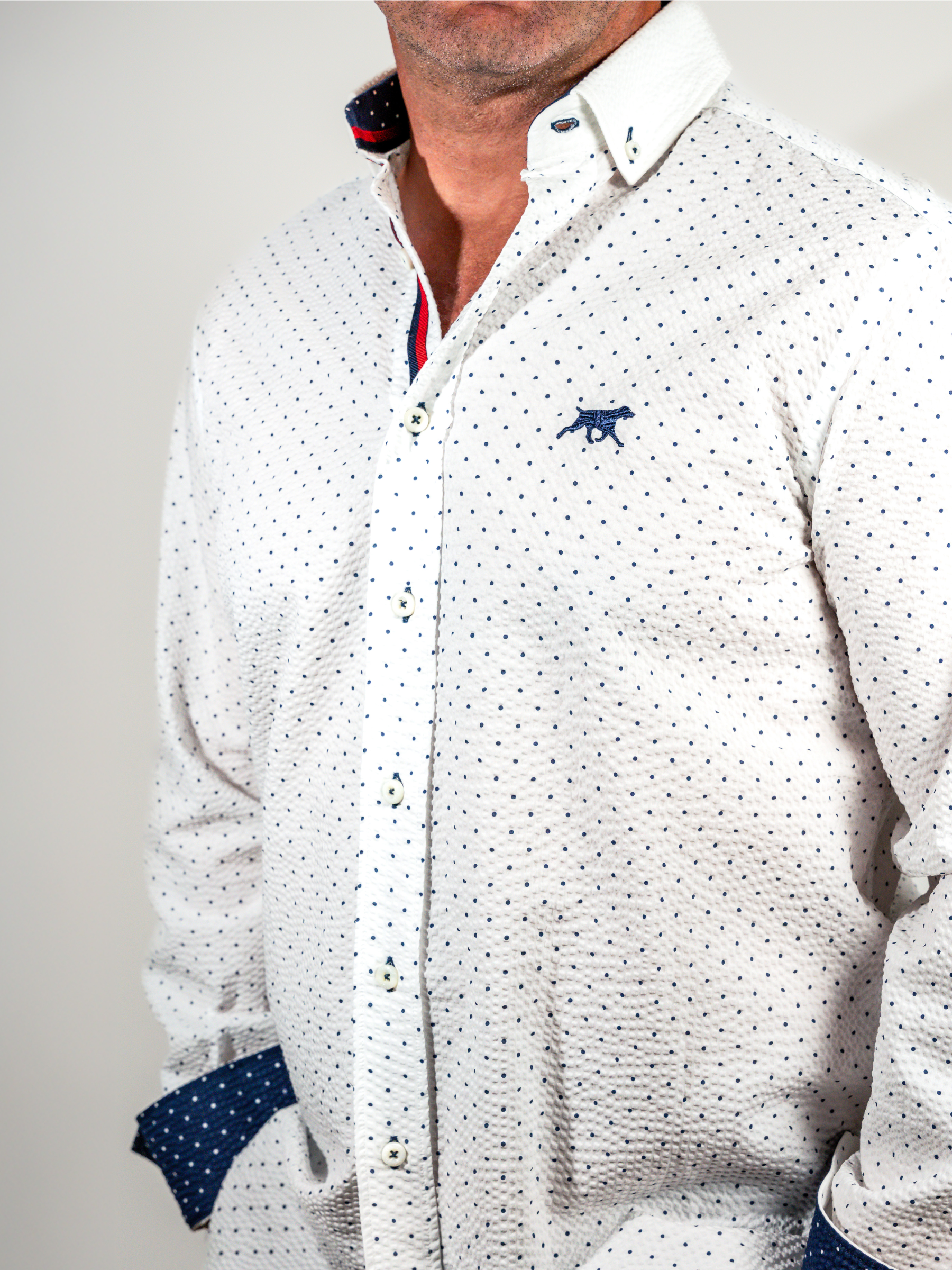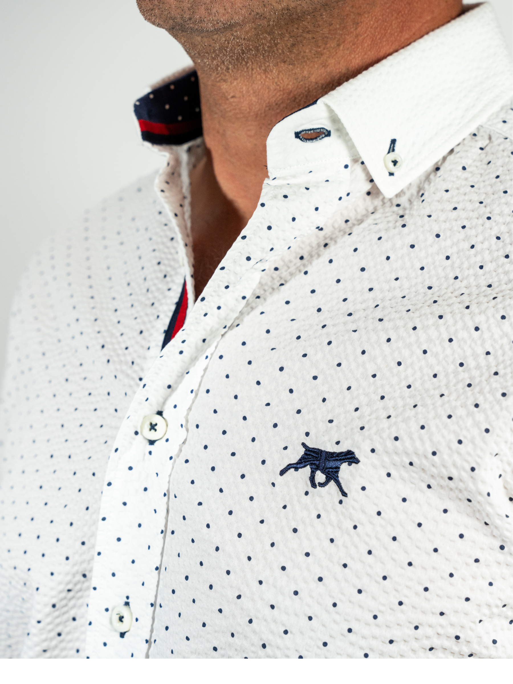 A perfect blend of style, comfort, and craftsmanship, our Italian-made seersucker shirt is the ultimate wardrobe essential. Expertly crafted in Italy from premium 100% cotton, lightweight and breathable make it an indispensable addition to any gentleman's wardrobe.
